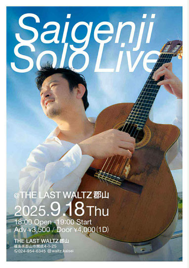 LIVE INFORMATION 2025年9月18日(木)郡山 THE LAST WALTZ Saigenji LIVE @郡山 THE LAST WALTZ 18:00 open / 19:00 start adv ¥3,500 / door ¥4,000(1d) The Last Walz 福島県郡山市開成4丁目1−25 024-954-6345 https://www.instagram.com/waltz.kaisei/ tagPlaceholderカテゴリ: コメントをお書きください コメント: 0