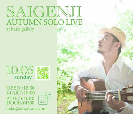 LIVE INFORMATION 2025年10月5日(日)代々木上原 hako gallery AUTUMN SOLO LIVE at hako gallery OPEN /18:00 START/19:00 ADV/¥4000 DOOR/¥4500 リクエスト用のメモを置いておきますので、ご自由にお書きください! <ご予約> hako@ai.wakwak.com ハコギャラリー 東京都渋谷区西原3丁目1−4 03-5453-5321 http://hakogallery.jp/ tagPlaceholderカテゴリ: コメントをお書きください コメント: 0