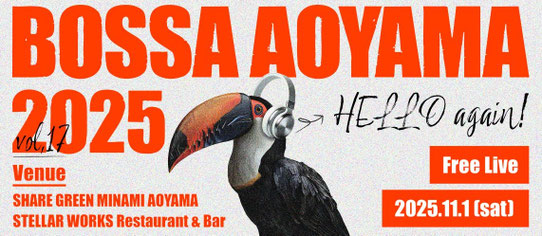 LIVE INFORMATION 2025年11月1日(日)BOSSA AOYAMA 2025 【BOSSA AOYAMA 2025】 11月1日(土)12:00~ ※雨天時決行 https://www.bossa-aoyama.jp/ <SHARE GREEN MINAMI AOYAMA> 15:00~ Saigenji 16:15~ MARIANA 17:30~ Naomi & goro ※フリー観覧です tagPlaceholderカテゴリ: コメントをお書きください コメント: 0